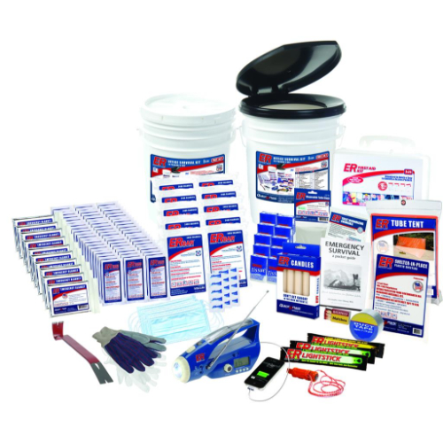 Natural disasters, power outages, and emergencies can strike without warning, requiring organizations and families to shelter-in-place for extended periods. The ER™ 10 Person Ultimate Deluxe Survival Kit equips groups of up to 10 people with essential 72-hour survival supplies, securely packaged in two water-resistant 5-gallon buckets with snap-on toilet seats for added sanitation functionality. This kit delivers comprehensive readiness for classrooms, office buildings, and small teams during earthquakes, hurricanes, tornadoes, or extended disruptions to public utilities.
